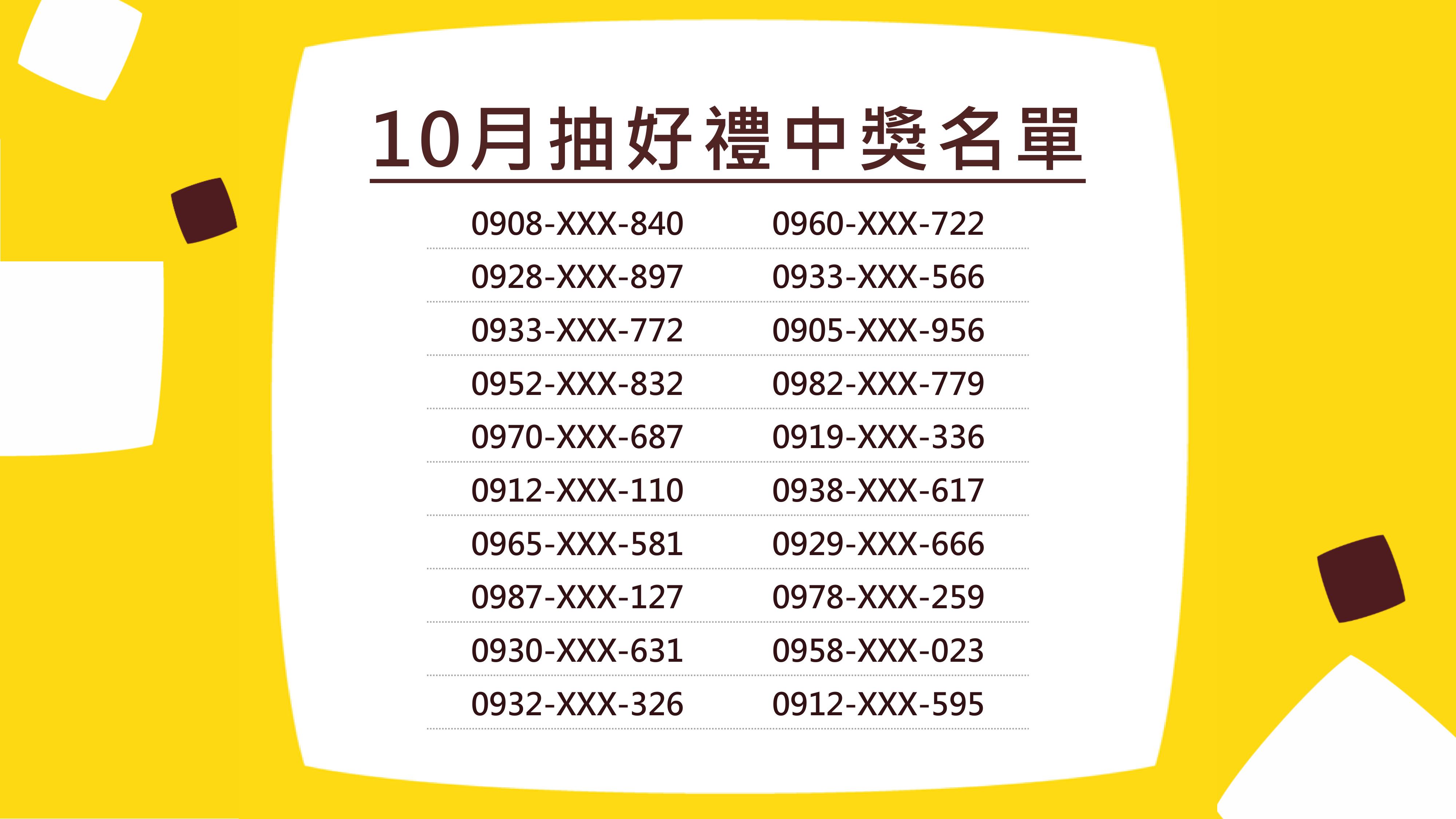 每月10日由系統抽出前一個月的中獎名單並公布於官網。