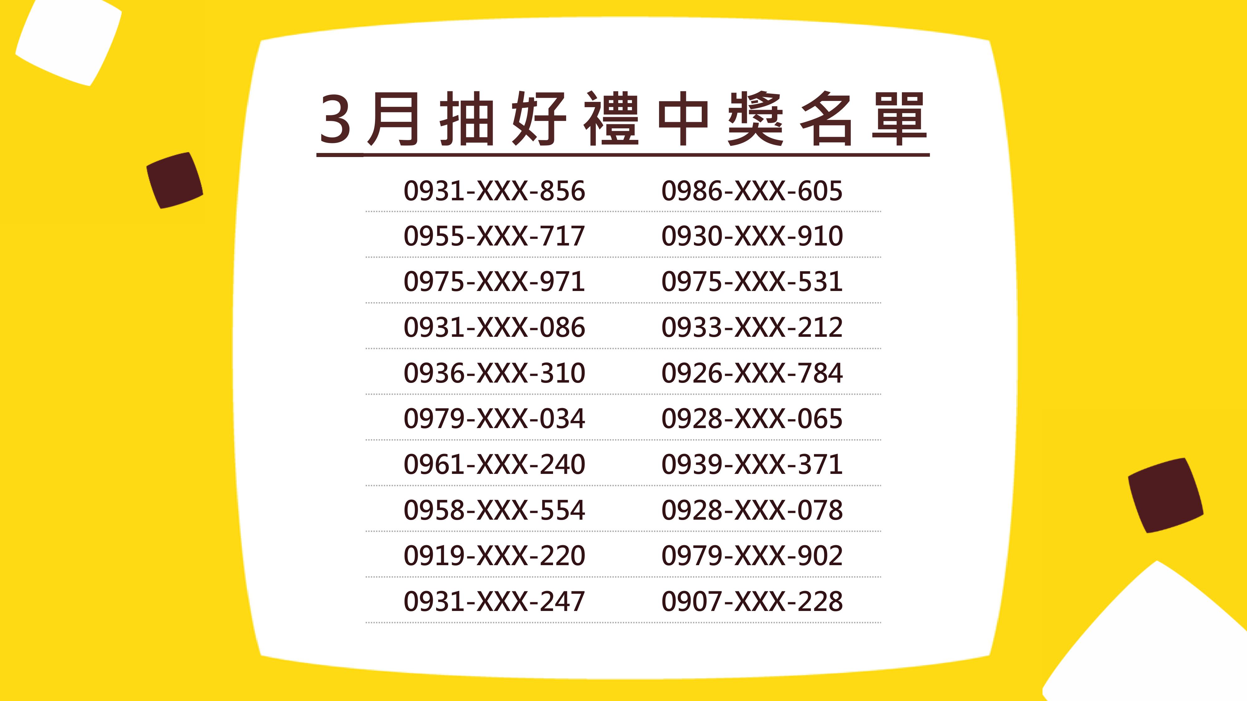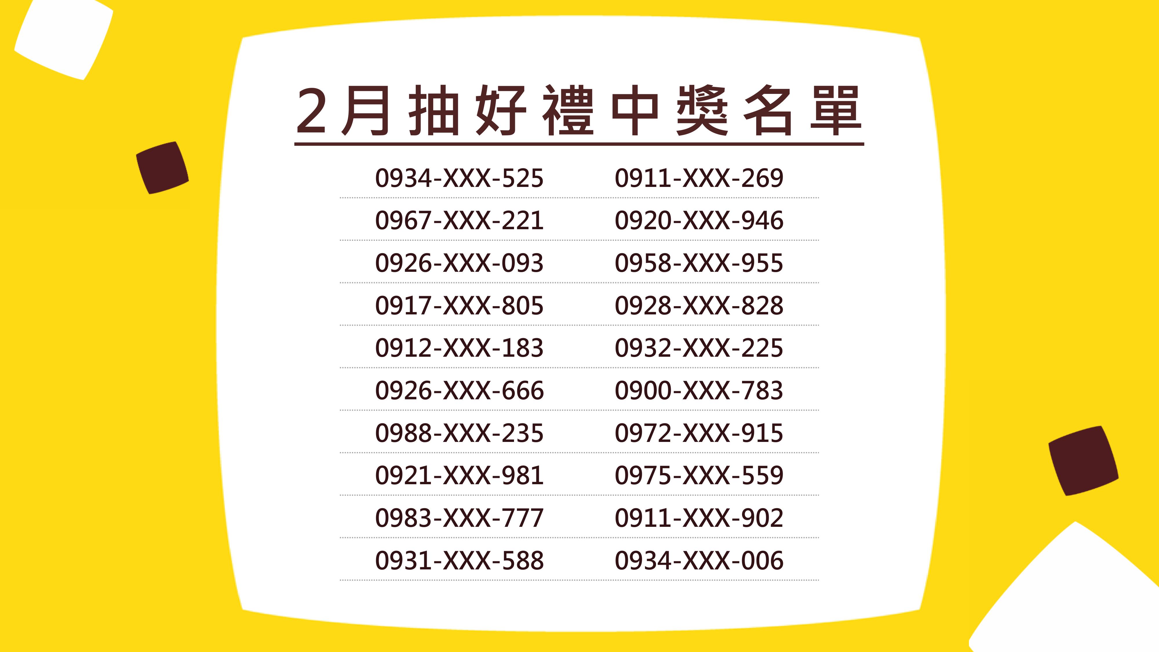 3.此手機號碼將做為中獎者的電子即享券發送門號,如號碼有誤導致無法發送成功,將視同放棄中獎權利,遺失恕不補發。