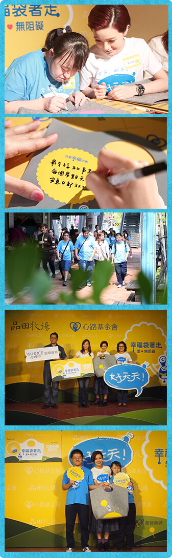 品田牧場與心路基金會合作幸福袋著走活動邁入第三年,為深入關懷心路的孩子們,品田牧場、幸福大使陳妍希於2014/8/15前往心路基金會萬芳發展中心,與11位心路青年展開第一次的互動接觸。